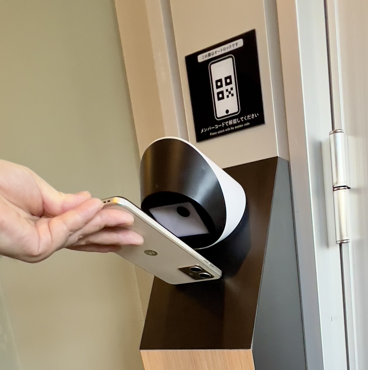出入口はオートロックを完備しています。入退室の際は会員QRコードが必要です。